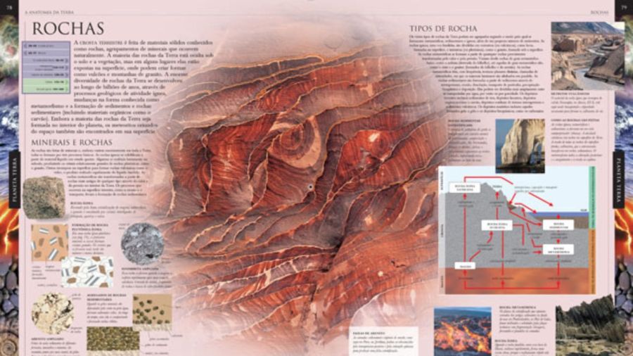 Dividida em cinco seções, a enciclopédia explora desde a constituição da Terra e sua posição no Sistema Solar até os segredos de rios, florestas, oceanos e a dinâmica das placas tectônicas.