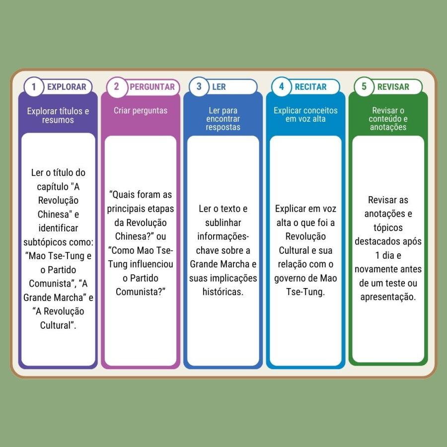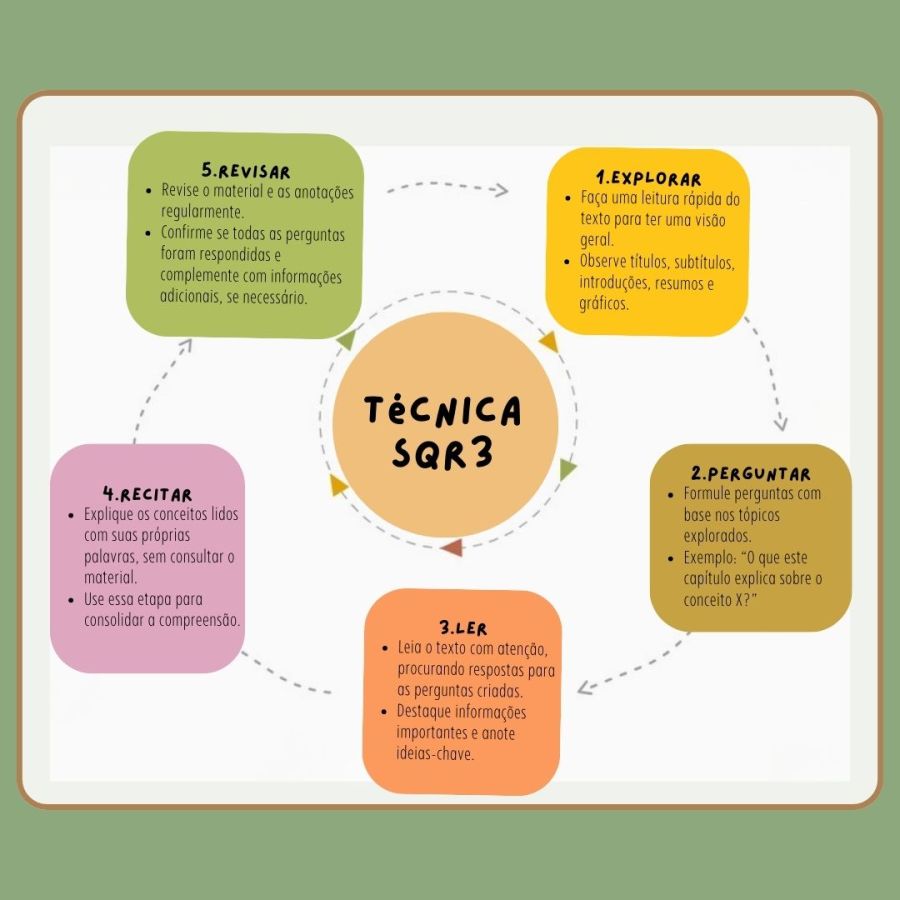 É uma técnica de leitura ativa que estrutura o processo de estudo em cinco etapas: